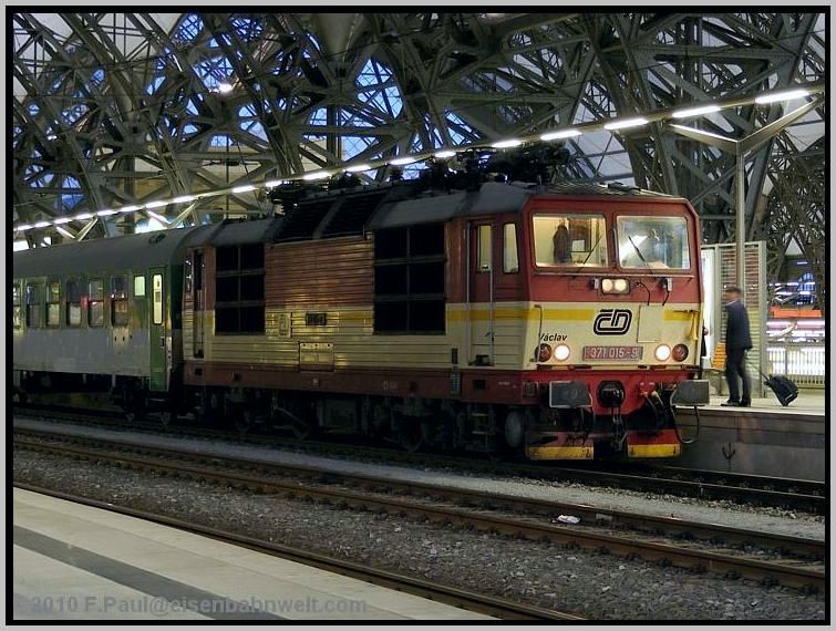 von Wien nach Binz mitzuerleben. Pünktlich trifft der Zug ein, bespannt mit 371 015, welche neuerdings auf den Rufnamen "Vaclav" hört. Aber noch ist