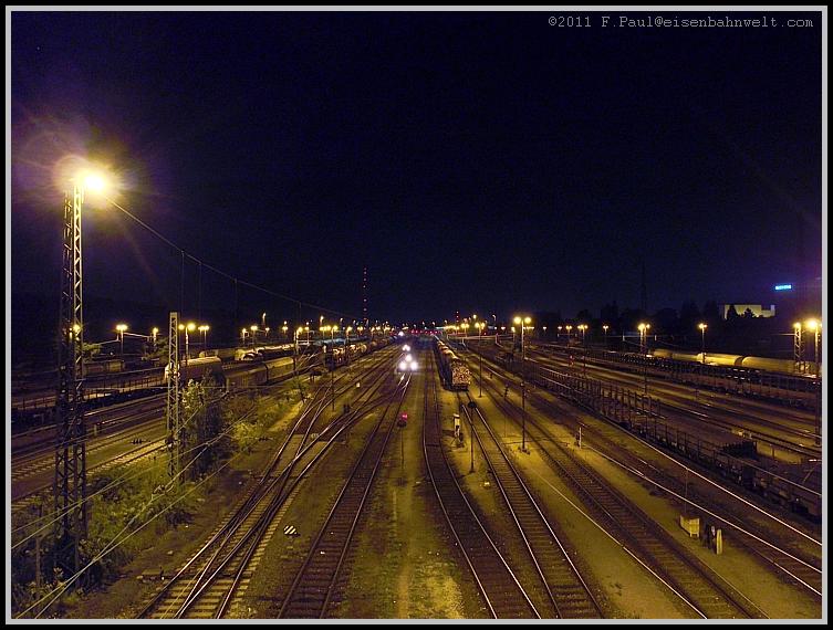 ![]() Und nach Nürnberg-Stein hin zweigt 152 090 mit FIR 51714 (Nürnberg-Mannheim) ab. Sie erklimmt gerade die Steigung zum Überwerfungsbauwerk hin. |
