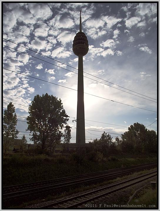 Wenn ich mich umdrehe, erblicke ich den Nürnberger Fernsehturm, hinter dem sich gerade die Sonne "versteckt". ![]() |