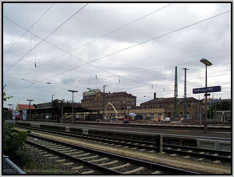 Im linken Bild dagegen rollt auf den Personenzuggleisen ein Ersatz-IC auf Fürth Hbf zu: 120 114 schiebt ihre 8 Wagen als IC 2806 von Nürnberg Hbf nach Berlin. Für ICE-T 108 gab es in München Hbf trotz des Freitags