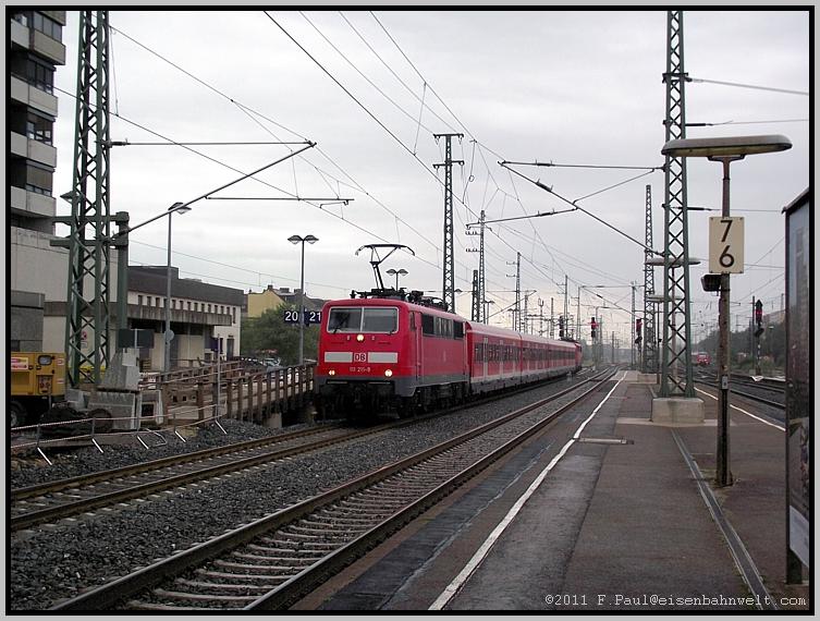 Während 155 138 mit FIR 51750 (Nürnberg-Engelsdorf) durch den Bahnhof rumpelt, wird Gleis 1 schon wieder belegt, diesmal mit dem neuzeitlichen Triebwagen 440 313, welcher meinem RE später als RB 58284 nach Würzburg folgen wird. Nun aber genug! Um 17:26 Uhr verlasse ich mit RE 4790 Bamberg, um um 20:32 Uhr nach einer im wesentlichen durchschlafenen Fahrt mit dem inzwischen zu RE 4622 mutierten Zug den Hbf von Frankfurt (Main) zu erreichen. Die eine Stunde schnellere Verbindung mit ICE bleibt mir mit Fahrrad ja verwehrt. |