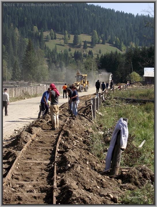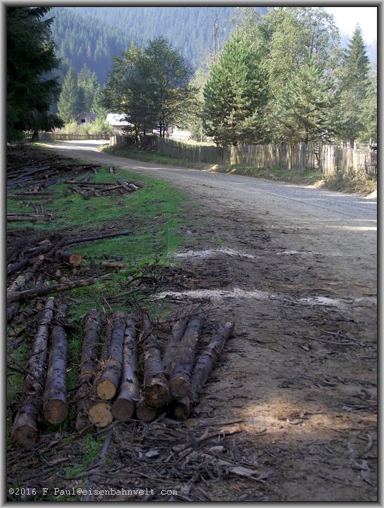 Arg durchgeschüttelt geht es vorbei am gleichnamigen Kloster hinein ins Tal der Moldovita und nach wenigen Minuten entlang der stillgelegten Normalspurstrecke
