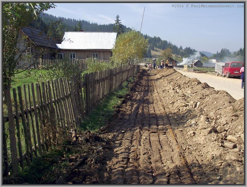 allerdings ein wenig komplizierter als auf der Wassertalbahn: Da die ersten Streckenkilometer ohne Flußnähe durch den langgestreckten Ort verlaufen,