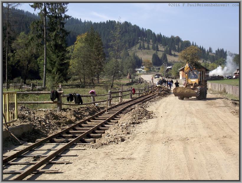 Wir verlassen erst einmal den Zug und spähen ein wenig über das Streckenende hinaus. Der Bahnchef möchte uns hier zeigen, wie der Weiterbau vorangeht.