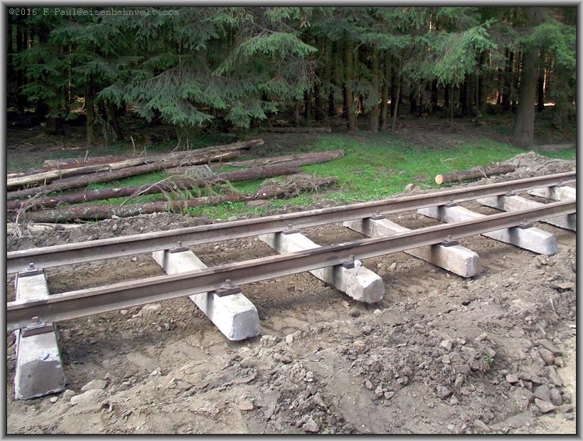 vorne noch ein zum Einbau vorbereitetes Gleisttück mit Betonschwellen vor, ganz modern!