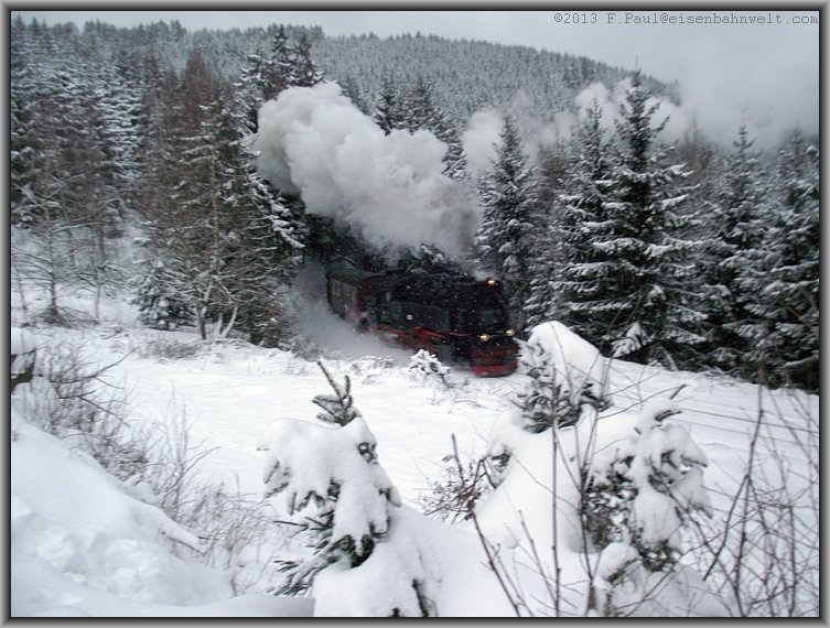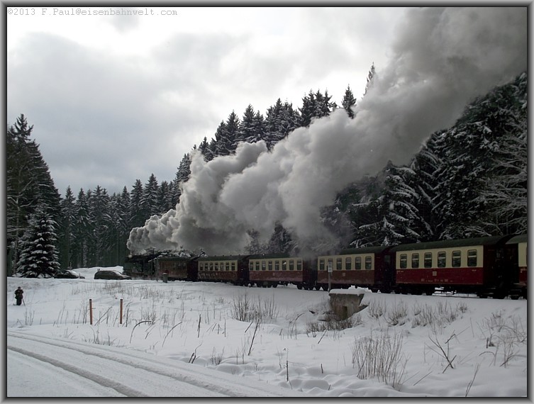 Der Februar 2013 bescherte uns wochenlang durchaus winterliche Temperaturen. Und an seinem zweiten Wochenende, am 09. und 10.02., gab es einige Sonderzüge von Wernigerode in den Oberharz,