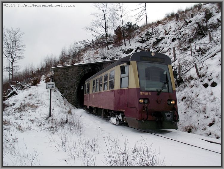 von Eisfelder Talmühle zurückkehrenden 187 019 schon in Drängetal gekreuzt. Ob dieser auf seiner Rückfahrt nach Wernigerode etwas voller ist, ist allerdings nicht erkennbar.