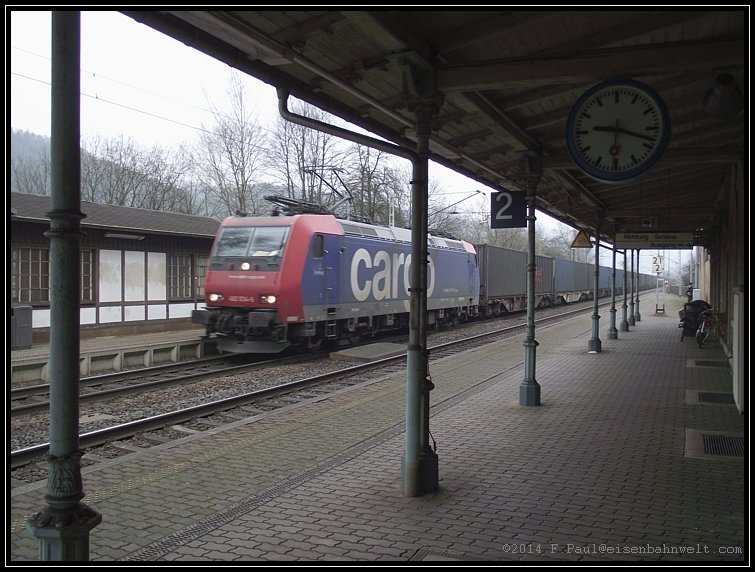 Nun melden sich aber unsere Mägen mit Macht! Als 182 020 mit S-D 37737 in den Bahnhof rollt, benutzen wir die Anschlußfähre