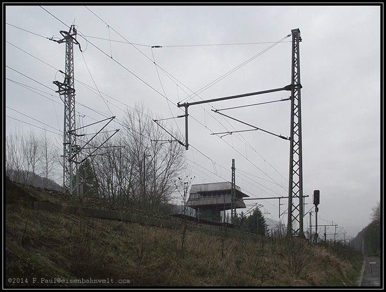Bevor ich die Strecke unterquere, noch ein Bild von dem markanten Gleisbildstellwerk des Bahnhofs. Auch dieses wird irgendwann Geschichte sein.