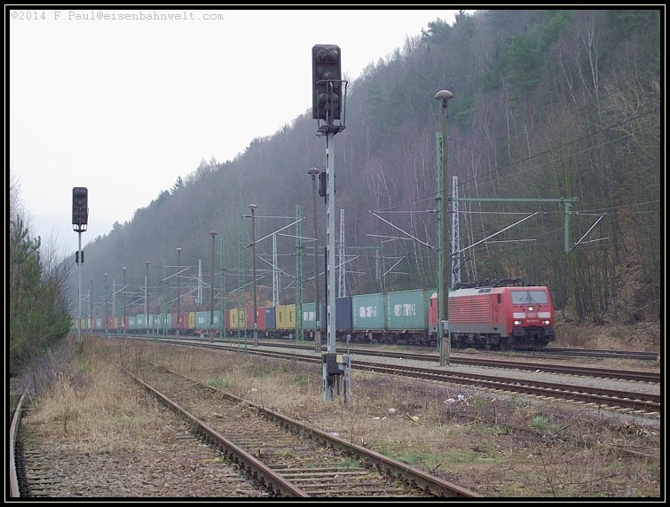 Dann stehe ich auf der stillgelegten Nordseite des Bahnhofs, während 189 016 mit KT 41308 vorbeirauscht, einem Containerzug von Prag Uhrineves