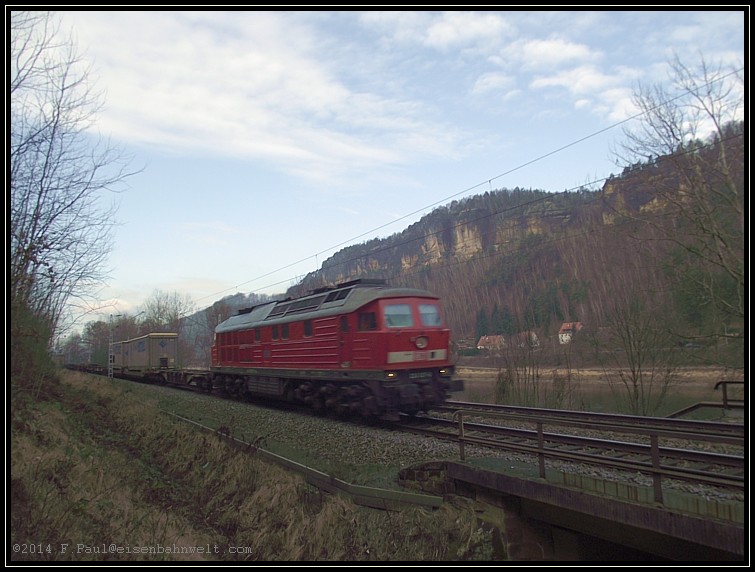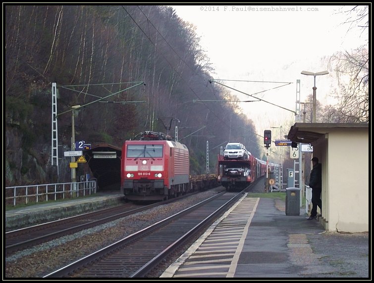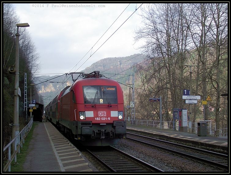Aber nun weiter: Als sich 182 021 mit S-D 37733 nähert, siegt die Faulheit und ich steige ein, um in dreiminütiger Fahrt nach Schöna, dem letzten