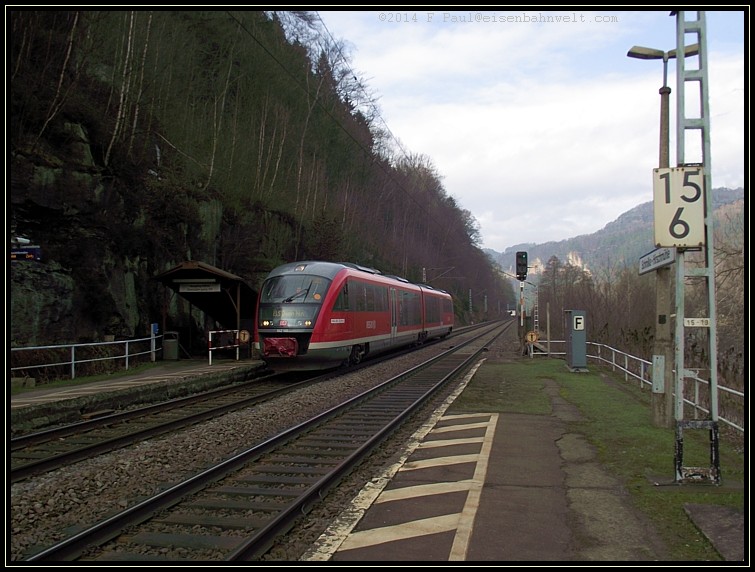 Langsam naht der Gegenzug in Gestalt von 642 144 als RB 5266, während das Blocksignal in Richtung Schöna schon wieder einen