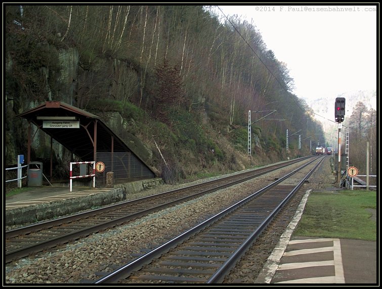 Fahrgastverkehr hier nicht mehr so groß. Außerdem zeigt das Blocksignal 36 ein grünes Licht, so daß auch die Einfahrt in den Bahnhof Schöna frei ist.