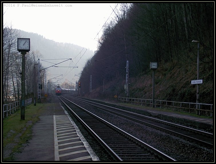Hinter dem langsam verfallenden Sozialgebäude des Bahnhofs kraxle ich den Hang hinauf und banne eine unerkannt gebliebene 185'er vor
