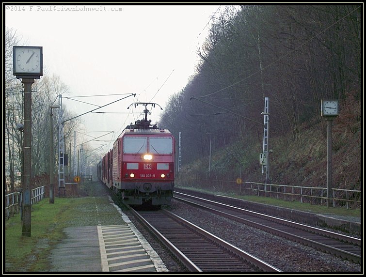 Aber was biegt denn da um die Ecke? Immerhin eine 180'er der DB bekommen wir heute noch zu Gesicht! 180 008 nähert sich mit