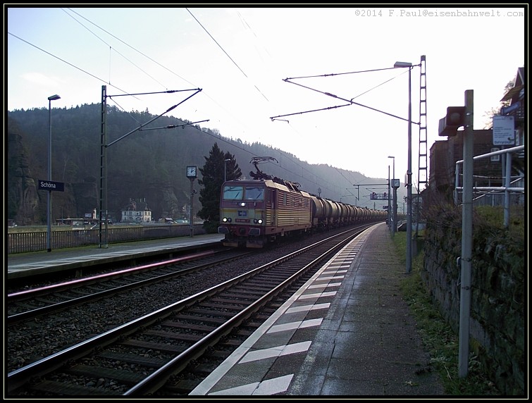 Gegenlichtaufnahmen möglich sind. So kehrt 372 006 mit ITL-DGS 48368 (Lovosice-Pirna Gbf) nach Deutschland zurück, wobei das Ziel der 2200 Tonnen Kesselwagen