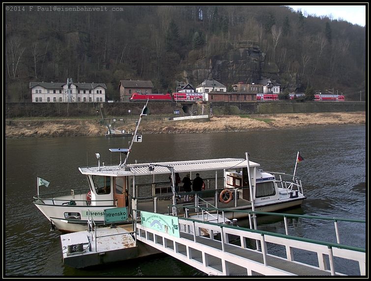 die wiederum aus 642 148 gebildete RB 5267 nach Decin. Nur kurz hält der Triebwagen hier, seit es die Fähre von Schöna nach Hrensko gibt, ist der