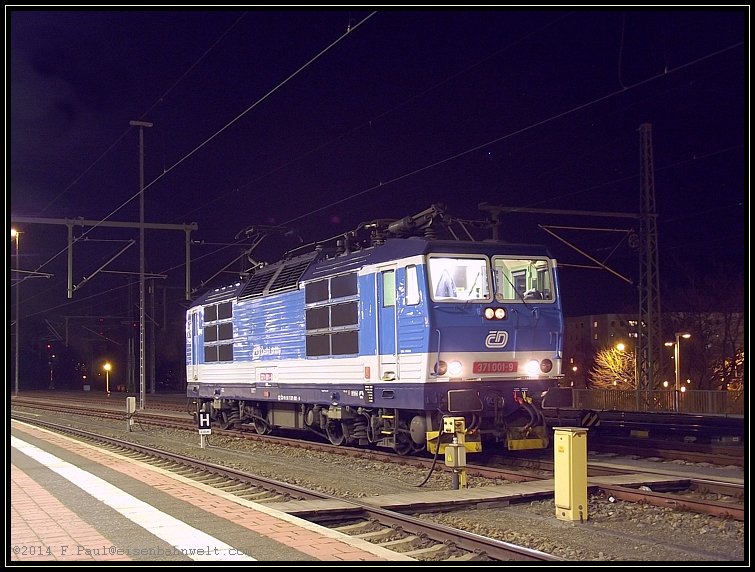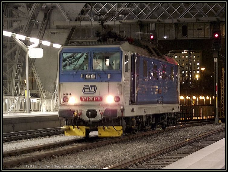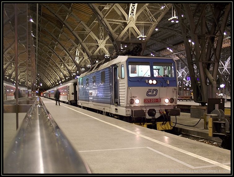 bis Prag befördert: 371 201 hieß im Jahr 1989 zuerst 230 001, dann 180 001, bis sie bei dem Versuch, sie auf eine Höchstgeschwindigkeit von 160 km/h