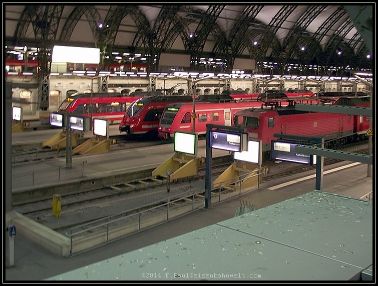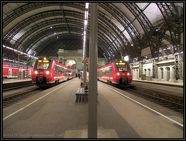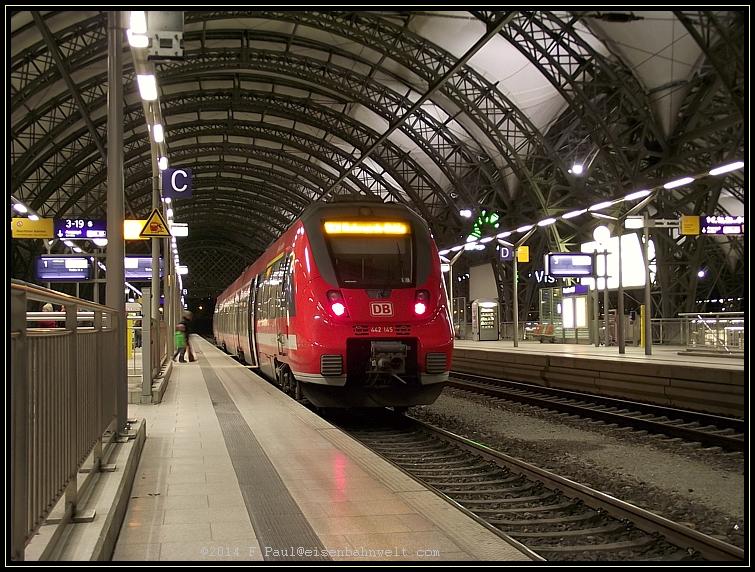 Wieder zurück zur Südhalle! Bernd verläßt mich mit RB 28978 nach Elsterwerda in Gestalt von 442 145 (Bild rechts). |
