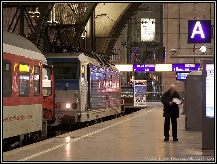 Nach einer reichlichen Stunde im Liegesessel erreicht CNL 458 den Leipziger Hbf. Da ich noch nicht schlafe, packe ich meine