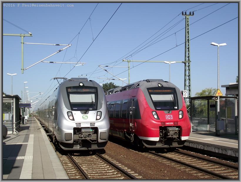 Die S-Bahn hat hier 10 Minuten Aufenthalt, Gelegenheit den grauen Talent mit der Nummer 1442 709 mit dem zwar baugleichen,