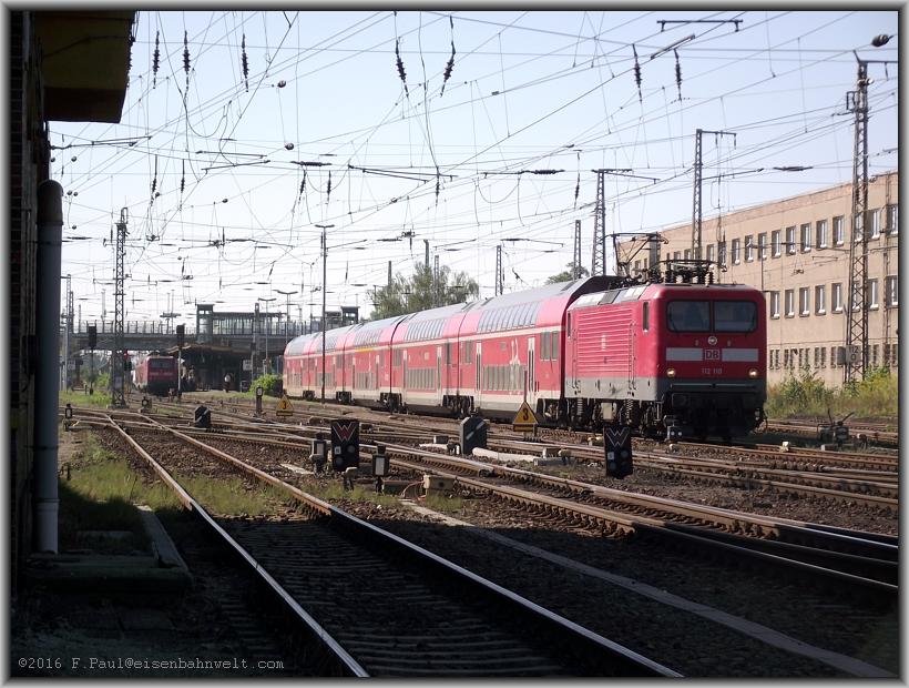 Recht schnell hat 112 123 mit dem Doppelstockpark aus RE-D 3305 nach Gleis 4a umgesetzt und Platz gemacht u.a. für 101 066, welche