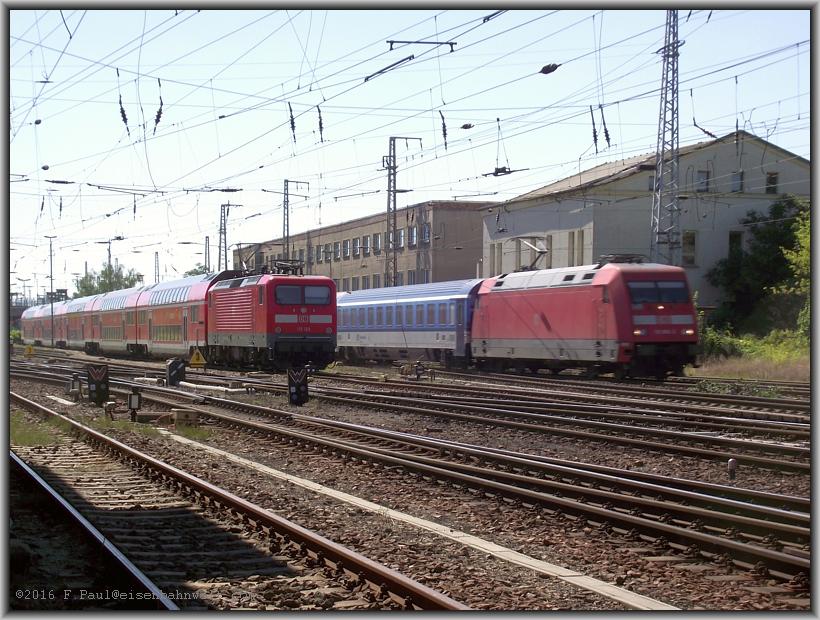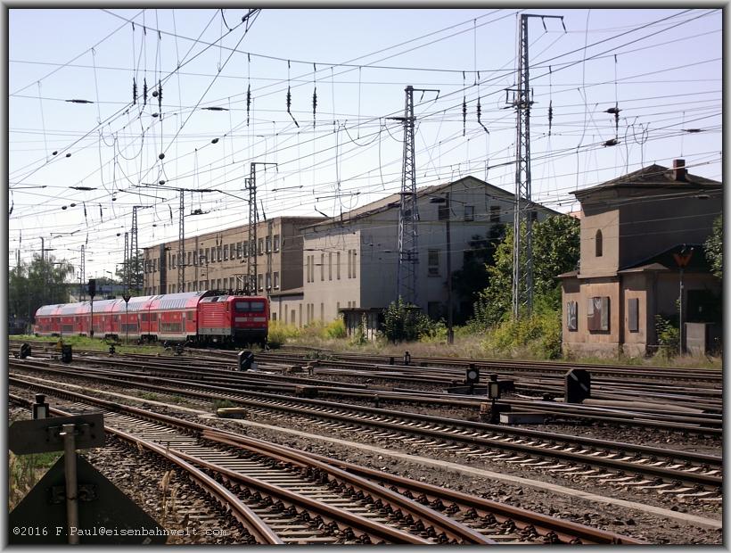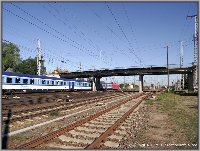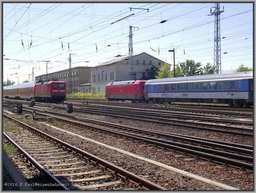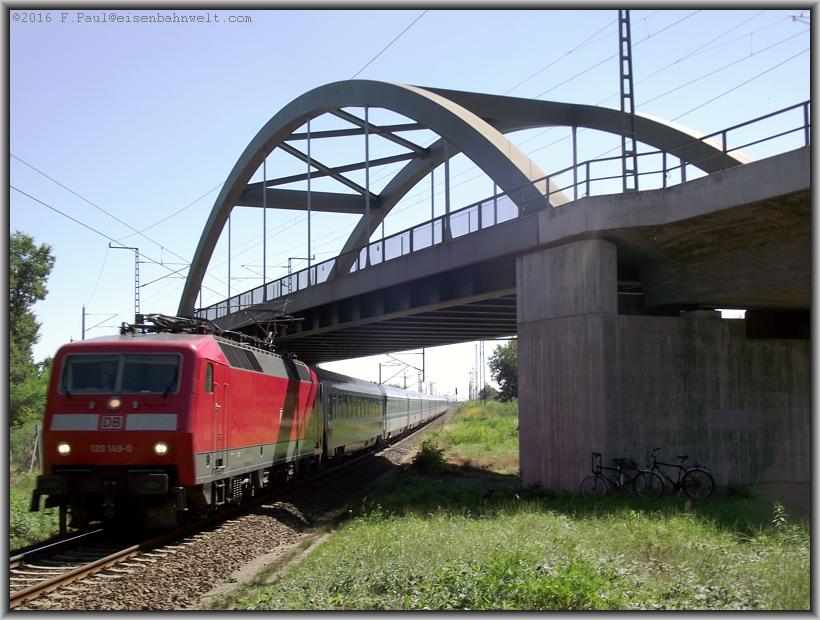 über die Anhaltinische Bahn. Natürlich ist dieses inzwischen erneuert, und, es bietet Schatten bis zur Durchfahrt der nächsten EC-Züge. 120 149 hat in Dresden
