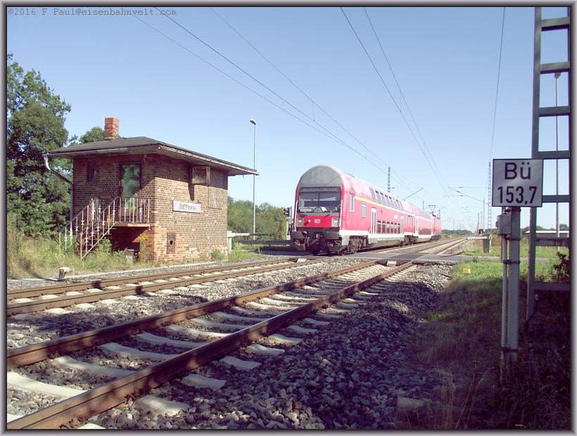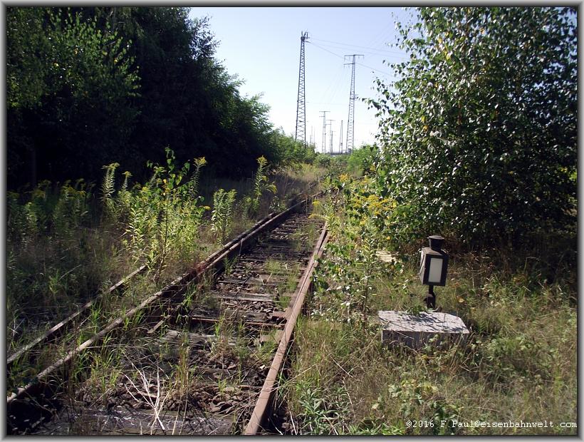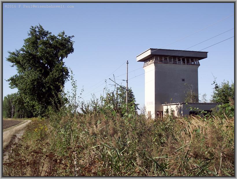 und erreiche auf ihr wiederum die Bahnstrecke am ehemaligen Abzw. Beyern. Ein alter Schrankenposten wurde zu sozialistischen Zeiten mit einem Spurplanstellwerk