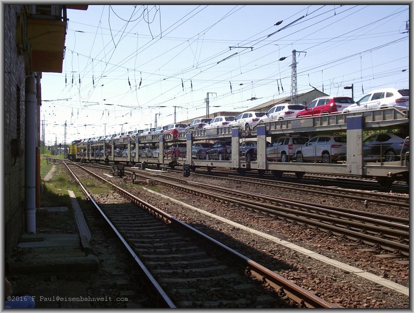 die leeren Autotransportwagen am Zughaken dürften die Kräfte der Lok nicht sonderlich fordern. Und auch auf der Anhaltinischen Eisenbahn tut sich etwas: