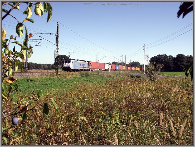 Regionalbahn ein Güterzug, und so ist es auch diesmal: 186 423 der Ruhrtalbahn zieht den VIAS-DGS 41380 (Decin-Lehrte) an mir vorbei, die langsam schwächer