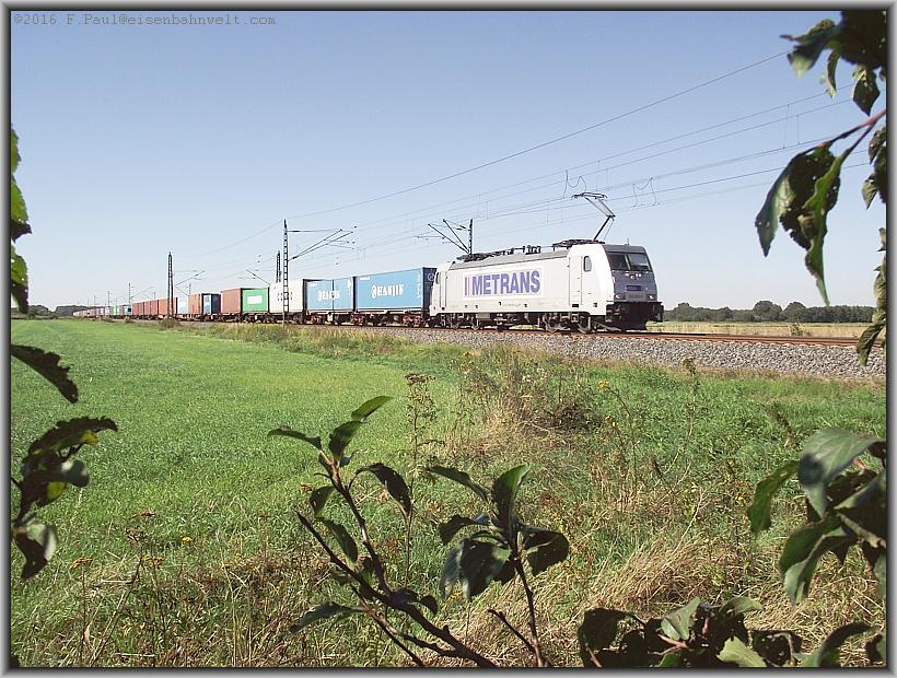 ein Metrans: 386 009 mit DGS 43313 von Hamburg Waltershof nach Praha Uhrineves.