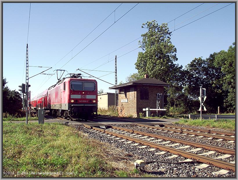 auch Schatten und so warte ich auf das einen Zug ankündigende Schließen der Schrankenbäume. Zuerst surrt ein unbekannter Talent als RB-D 37837 nach Halle (S)