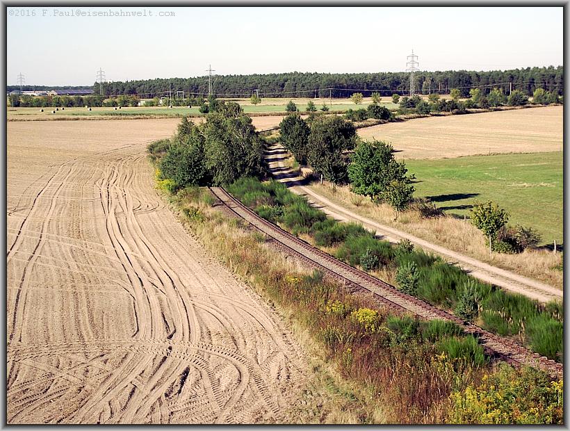 für Abwechslung beim Nachschuß auf den in Richtung Fermerswalde entschwindenden Zug. Jetzt habe ich es eilig, und radle in Richtung Falkenberg zurück,