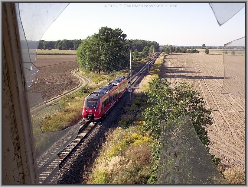 über Dessau heran, der 1442'er in der Lackierung der Mitteldeutschen S-Bahn paßt hier allerdings nicht unbedingt hin. Ja, und dann entdecke ich die verwilderte