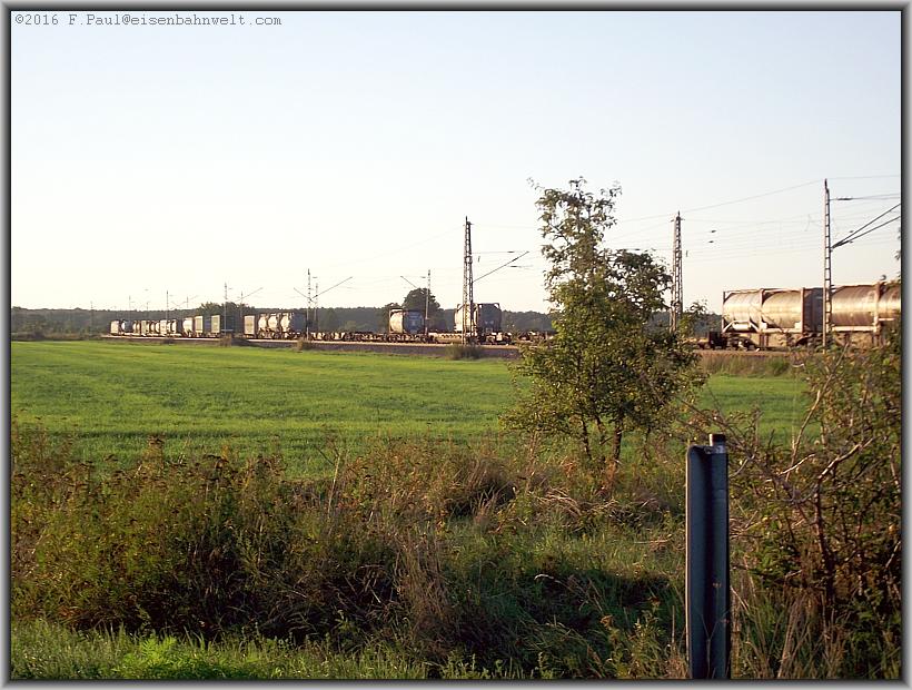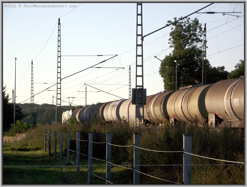 werdenden Sonnenstrahlen werden noch einige Zeit von beladenen Kesselwagen reflektiert. Na, dann weiter, am Sportplatz vorbei nochmal zum Bahnübergang mit den