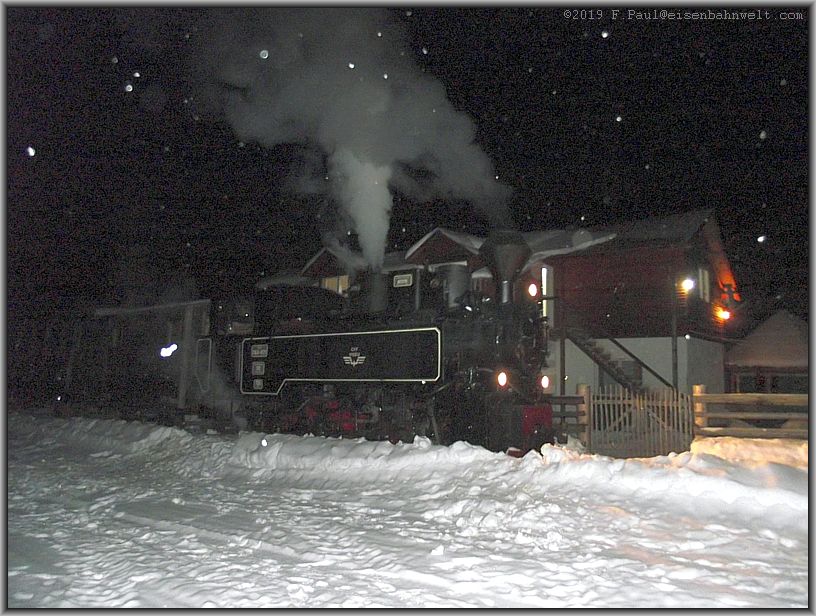 Aber nur kurz und auch nur teilweise erwacht der tiefverschneite Bahnhof aus seiner Winterruhe, die hier für die Touristen geschaffene