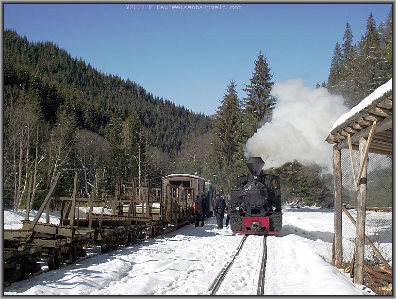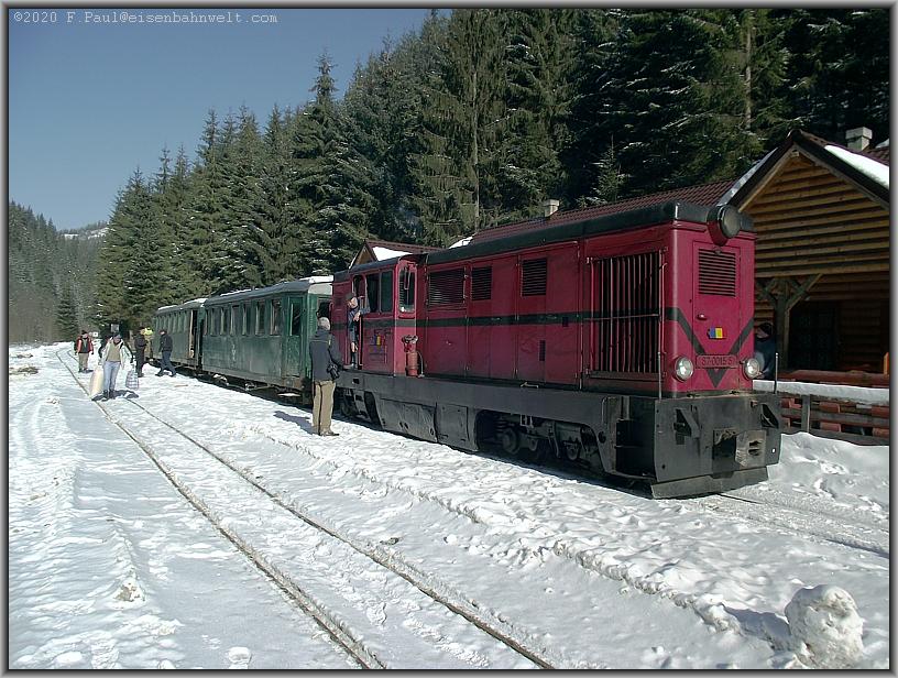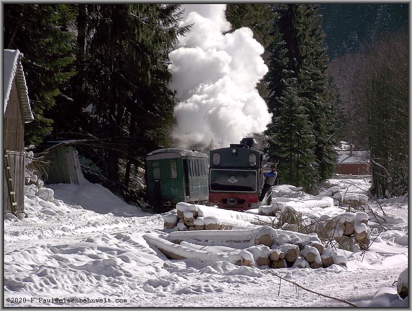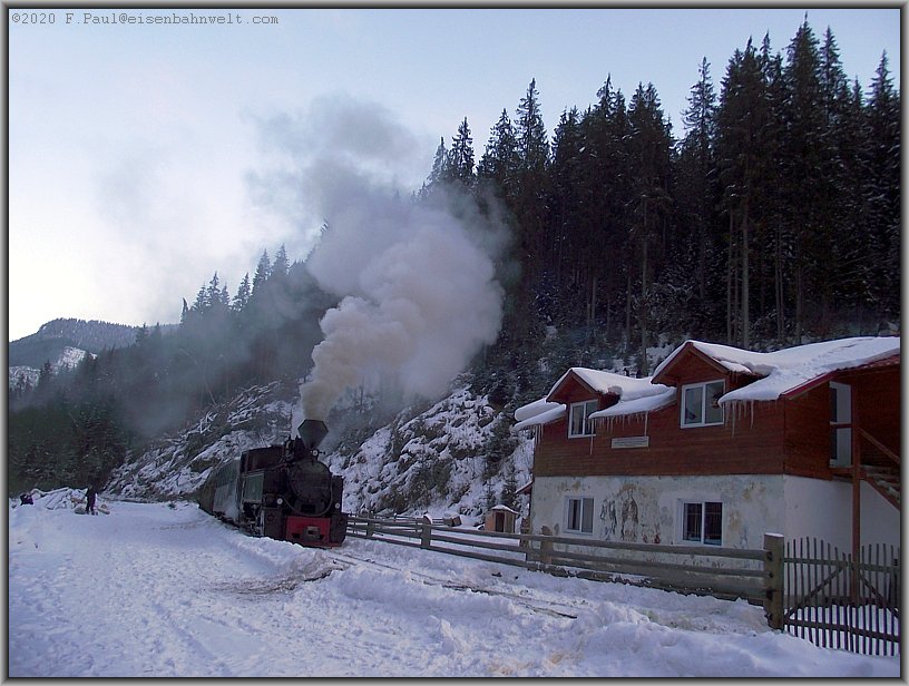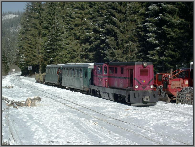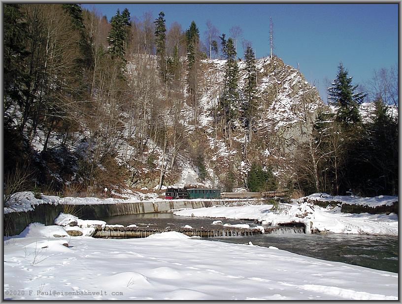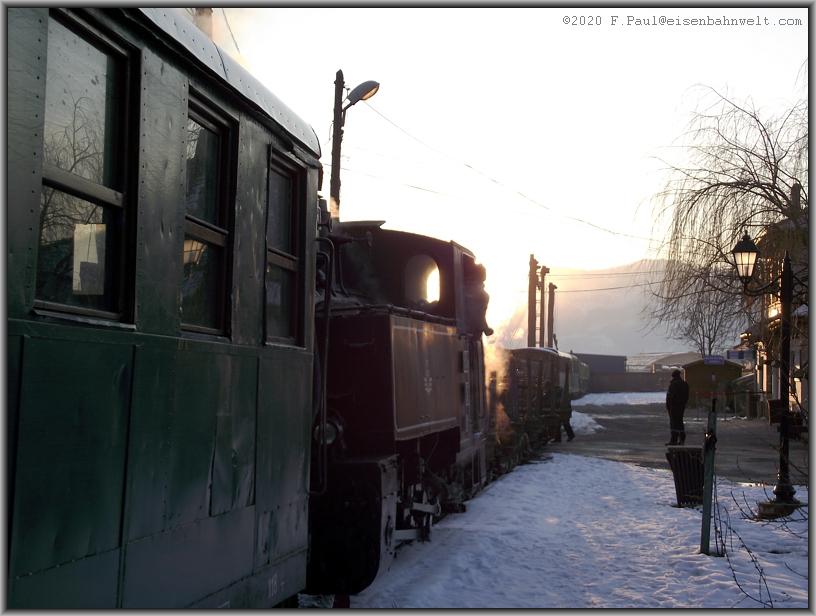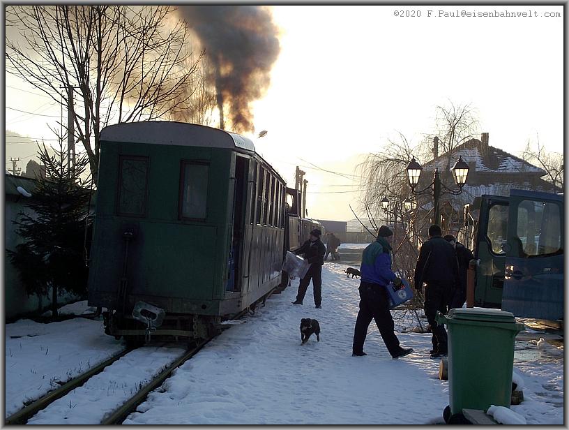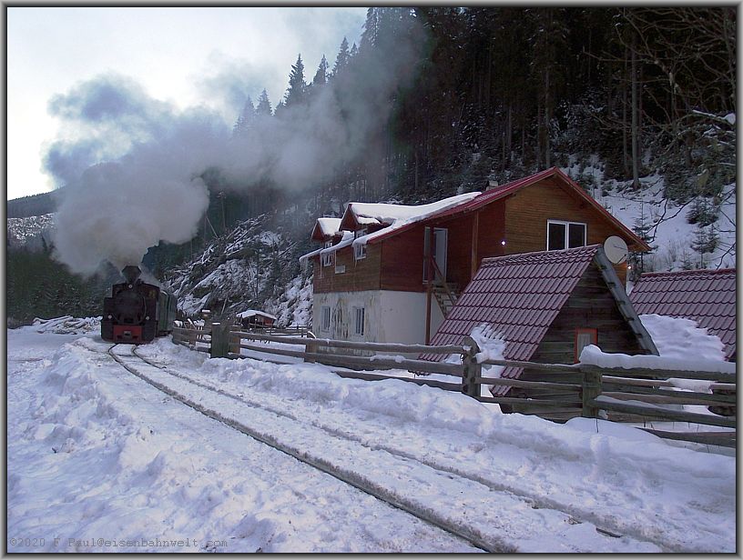 Bald ist nun Paltin erreicht, in der warmen Jahreszeit der Endpunkt des Touristenzuges. Aber im Februar ist hier keine Menschenseele und so beschränkt sich der Aufenthalt hier
