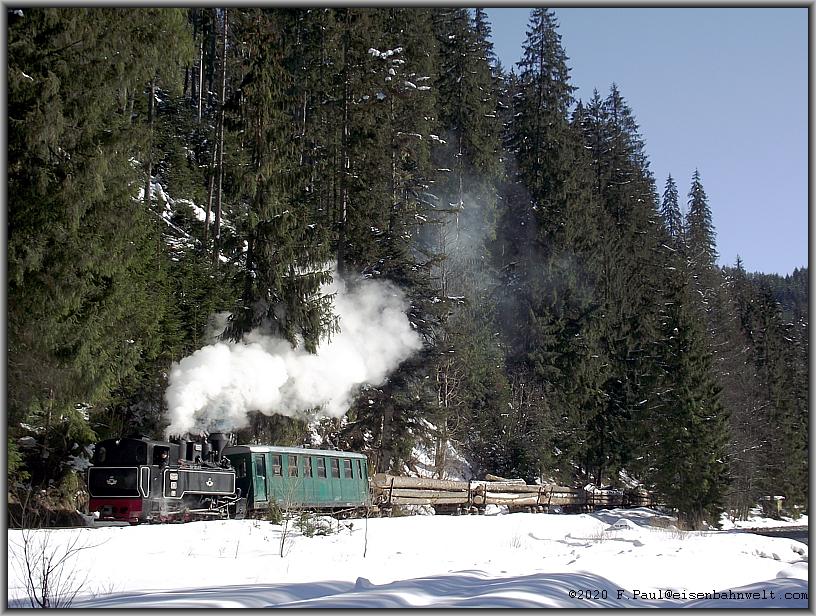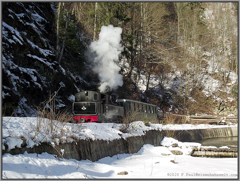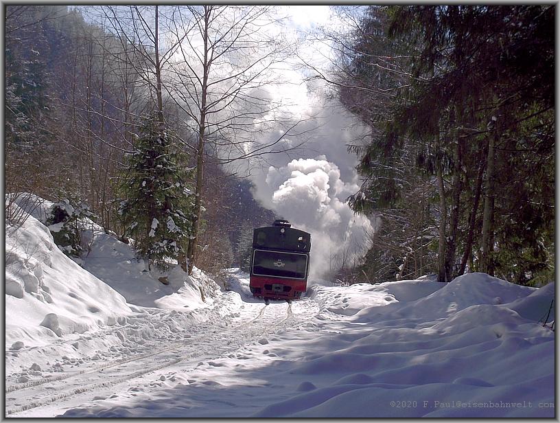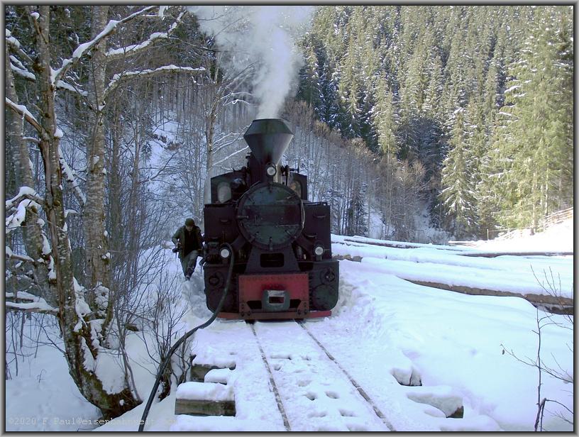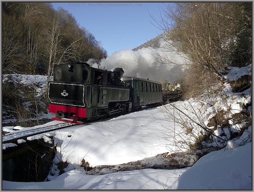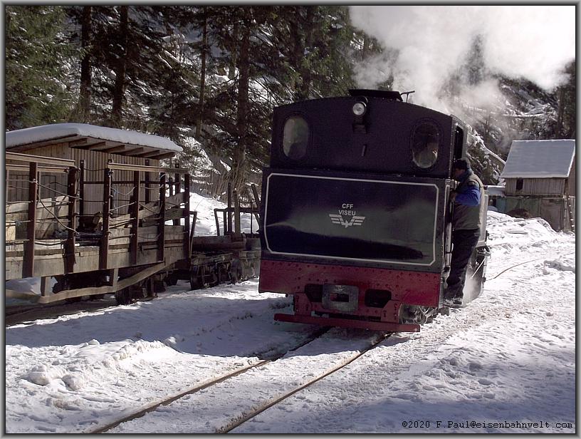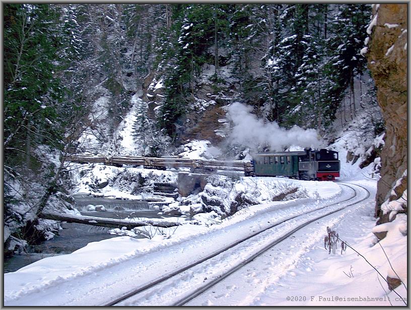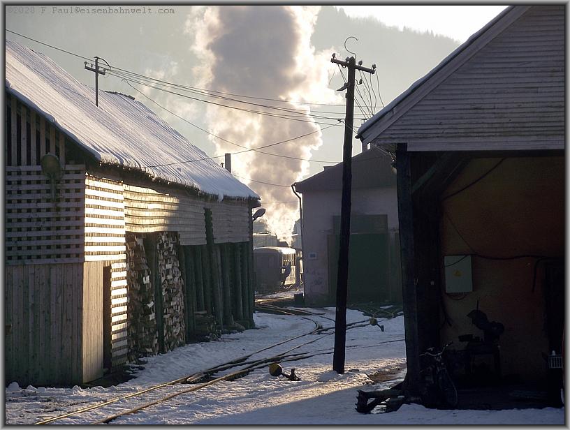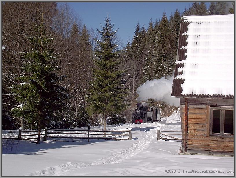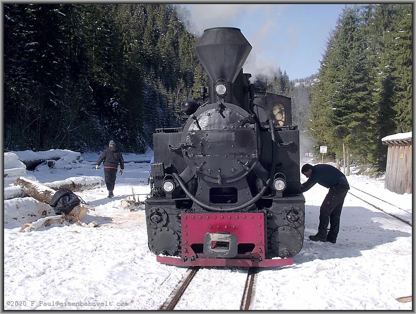 Bald ist nun Paltin erreicht, in der warmen Jahreszeit der Endpunkt des Touristenzuges. Aber im Februar ist hier keine Menschenseele und so beschränkt sich der Aufenthalt hier