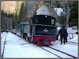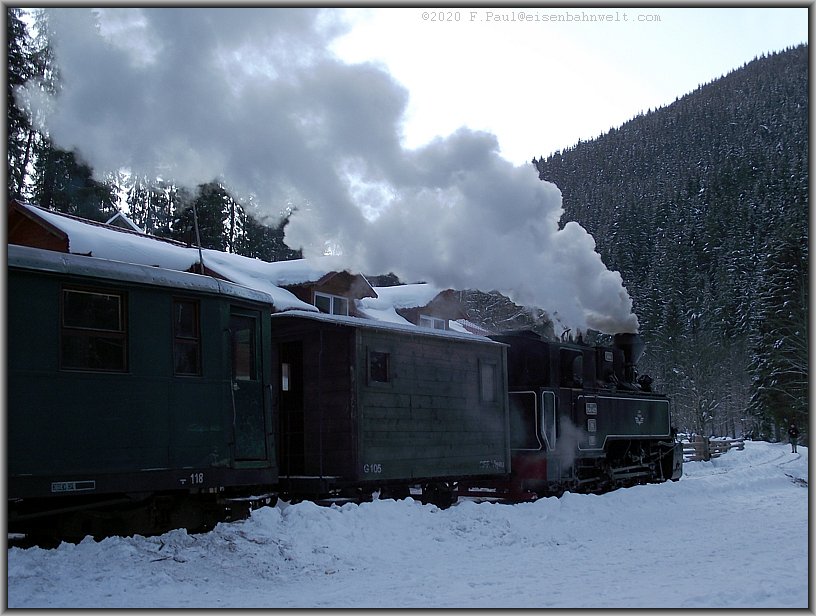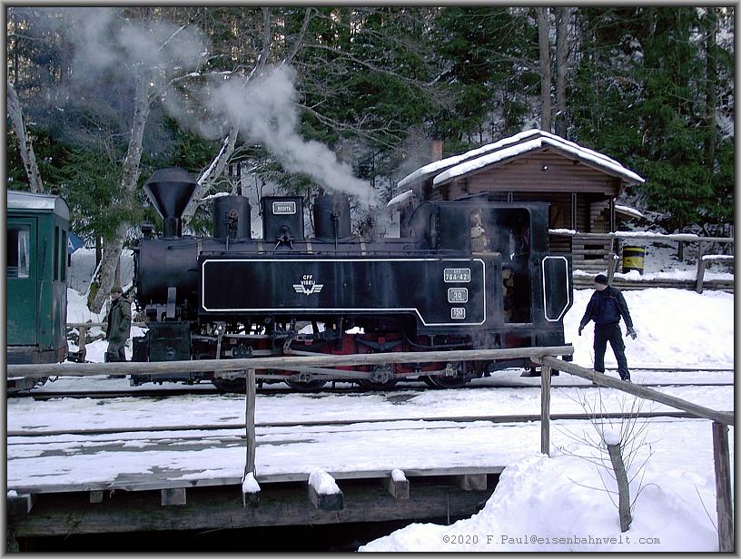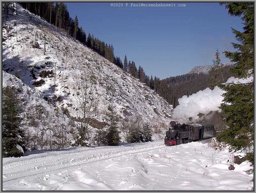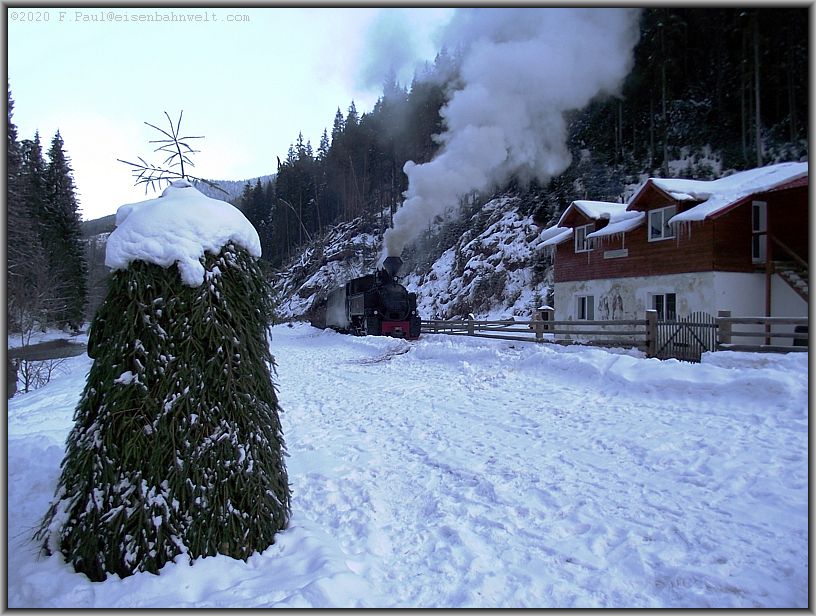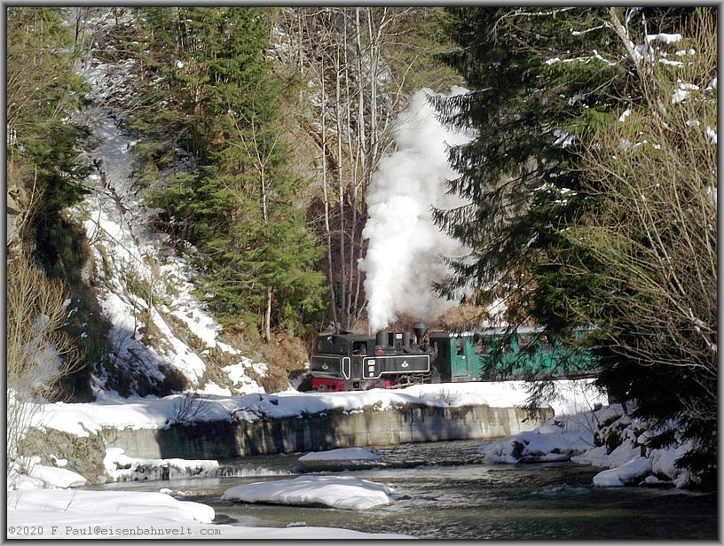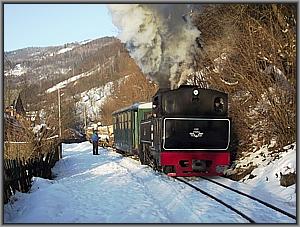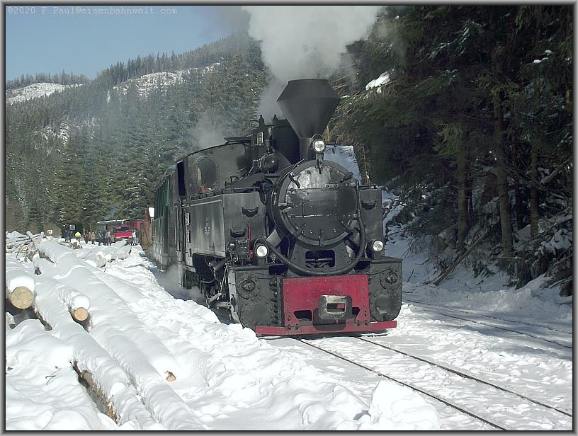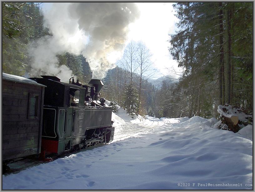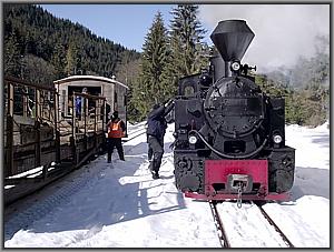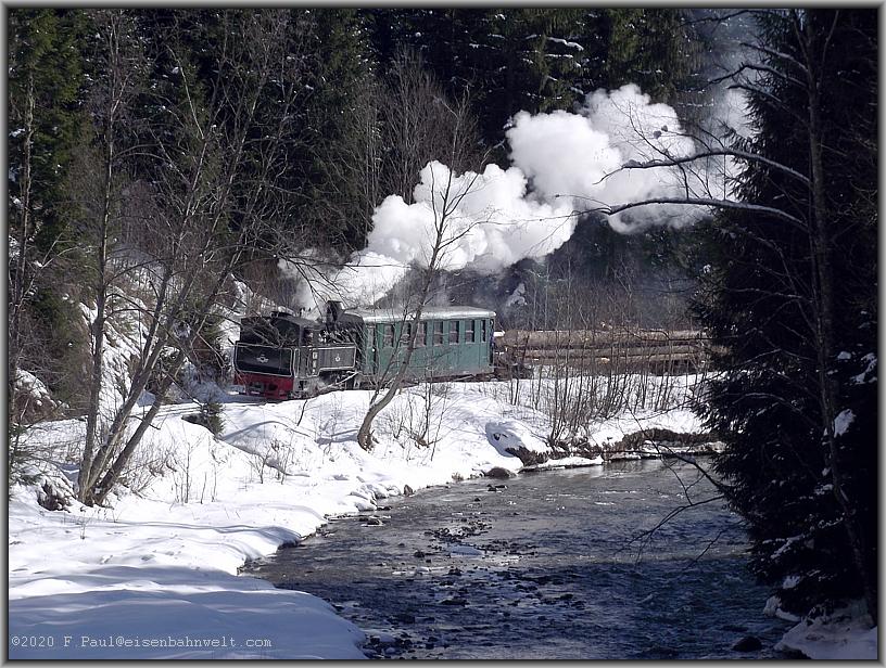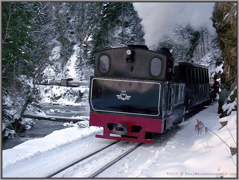Bald ist nun Paltin erreicht, in der warmen Jahreszeit der Endpunkt des Touristenzuges. Aber im Februar ist hier keine Menschenseele und so beschränkt sich der Aufenthalt hier