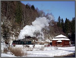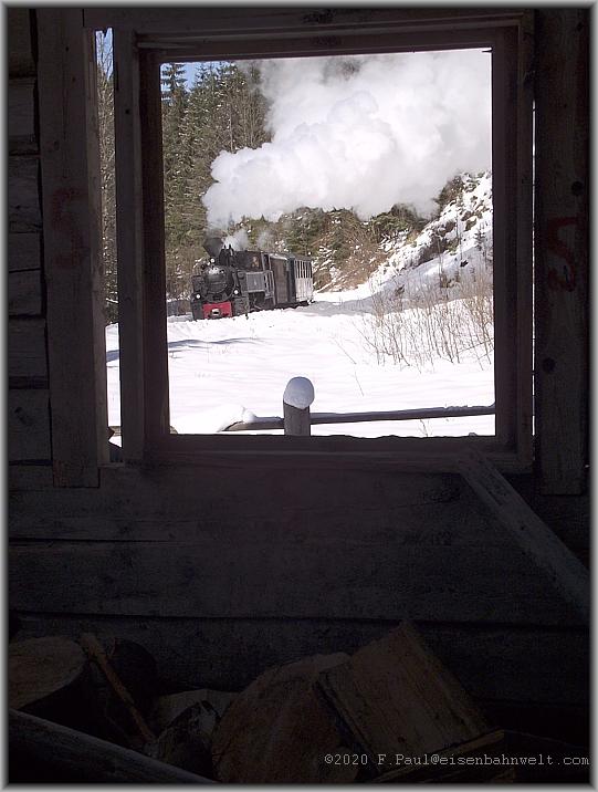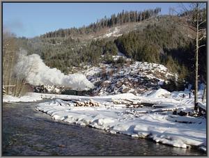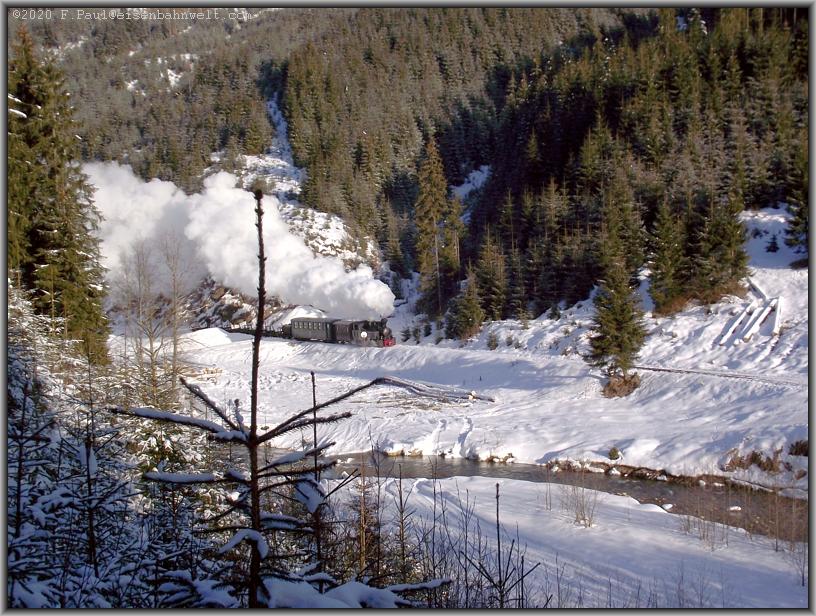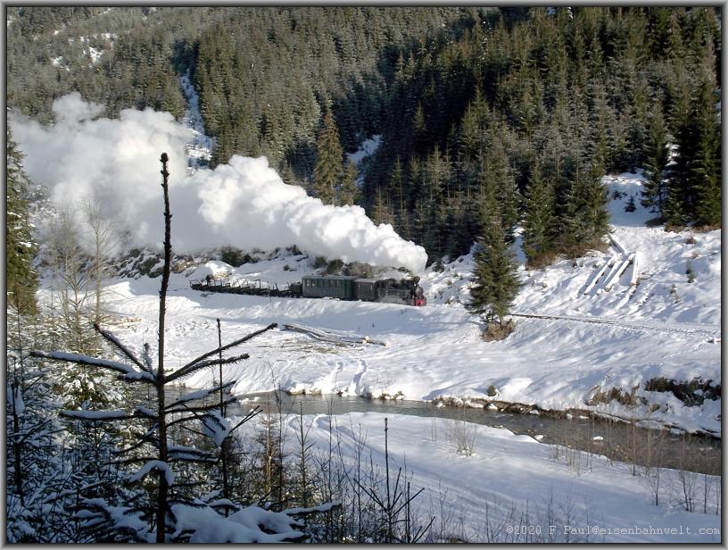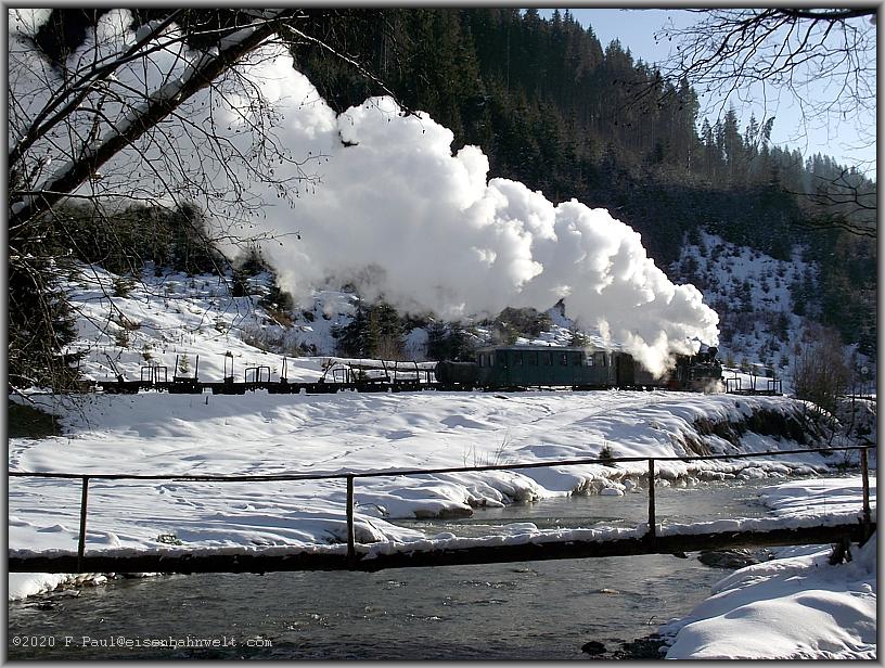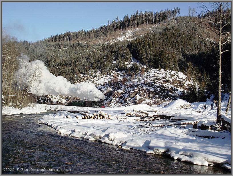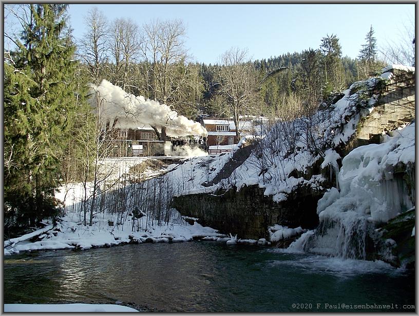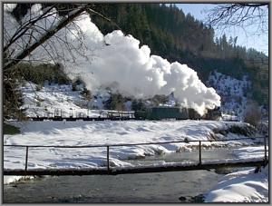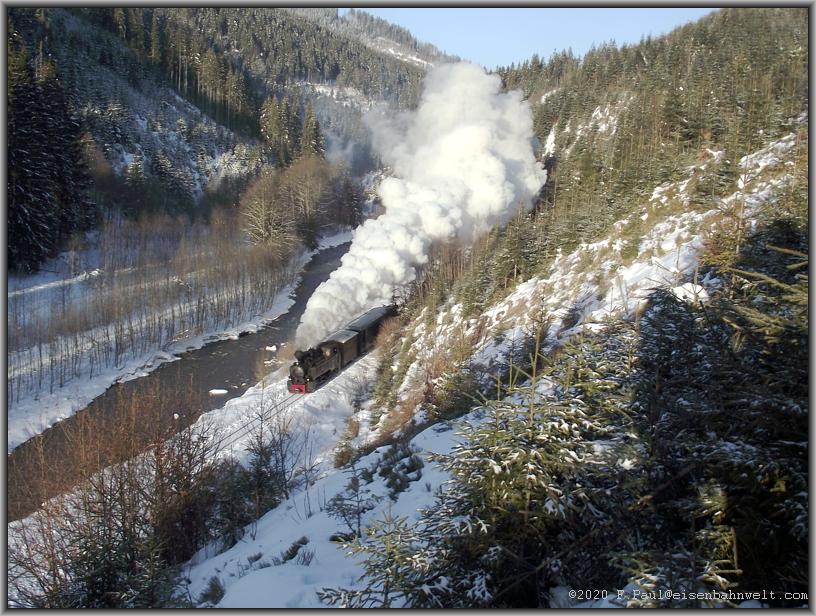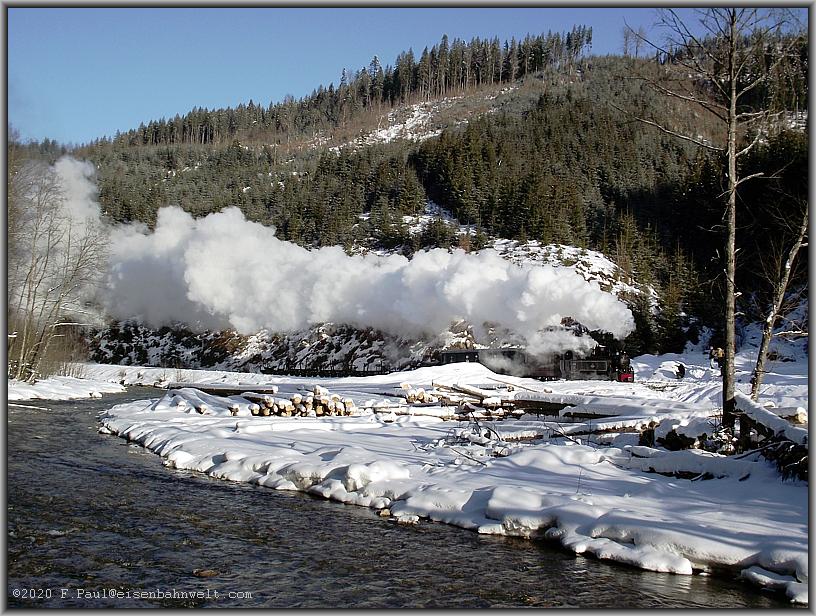 das reizvolle Wassertal und auch hier trägt der weiße Dampf zu gelungenen Bildern bei. Mit einer Diesellok am Zug wäre das Panorama längst nicht so schön.