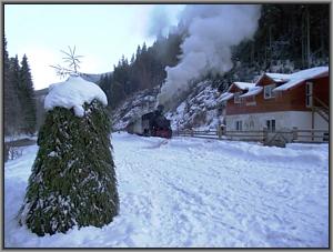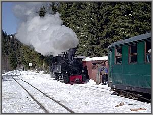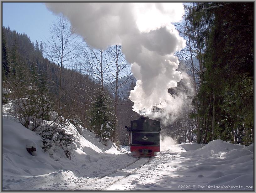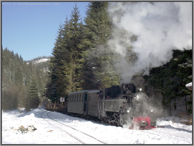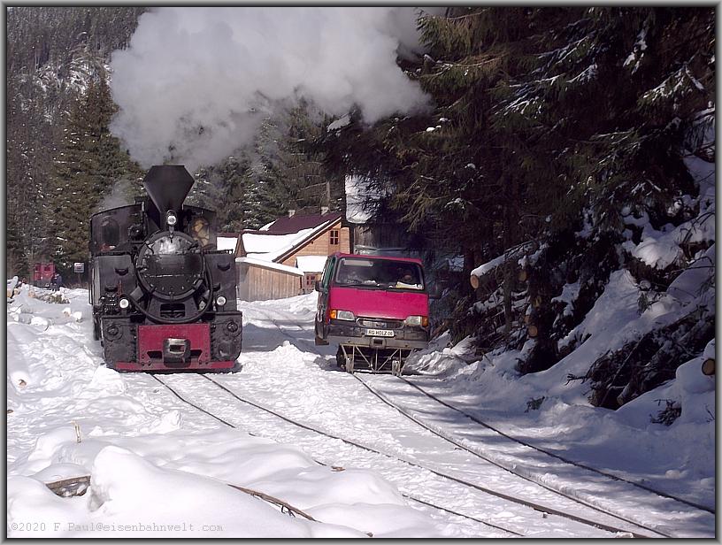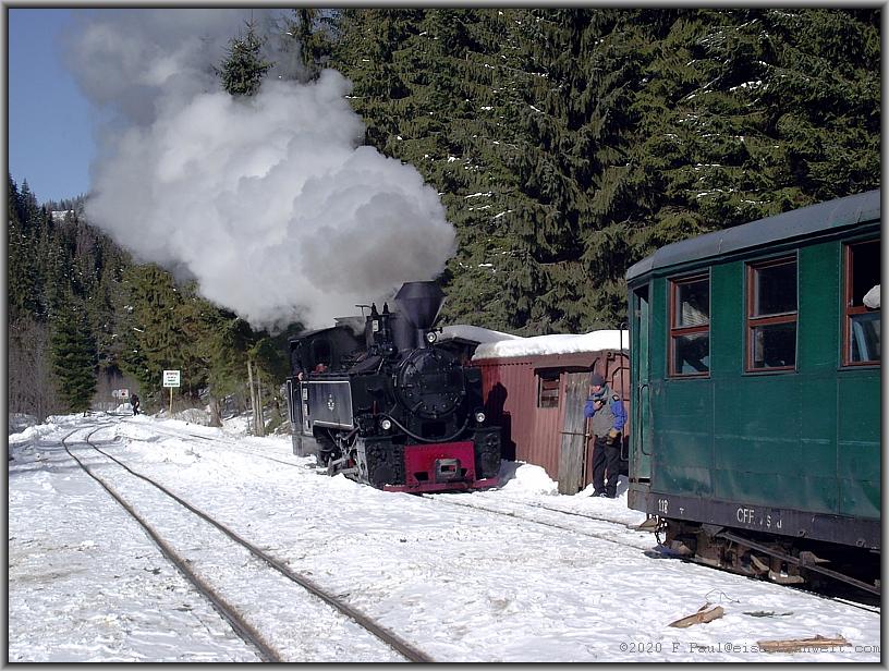als die Fuhre an uns unter wahnsinnig schöner Dampfentwicklung vorbeibullert. Auf nach Valea Babii! Auf nach Valea Babii! Und wie immer, wenn Sie noch ein wenig in Gura Steviora verweilen möchten,