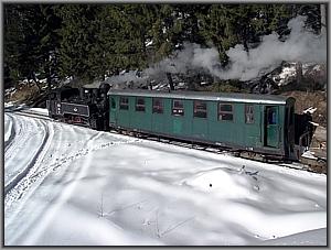 weitergefahrenen Personenzug, kurz darauf zeigt die anwachsende Dampfwolke die Abfahrbereitschaft unseres Fotozuges an und kurz darauf geht es auch für uns weiter bergan. Wollen Sie sich noch ein wenig umschauen?