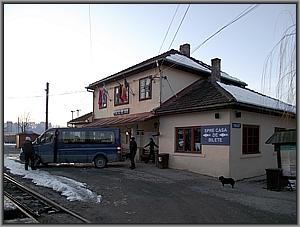 Gura Stevioara ist erreicht. Hier zweigt eine etwa 3 Kilometer lange Stichstrecke in die Berge ab, auf welcher eine Draisine wartet. So muss unser Zug erst einmal vor dem Bahnhof halten,