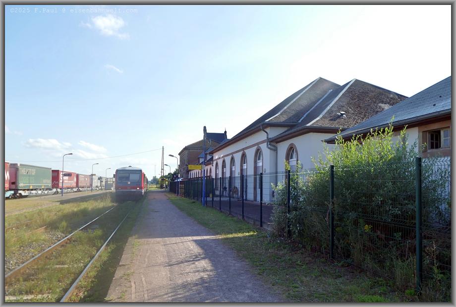 übriggeblieben, vom Verknüpfungspunkt mit der ehemaligen Nebenbahn nach Mertzwiller. Da rollt er auch schon weiter, der Zug, und ist noch lange auf der recht geraden Strecke in