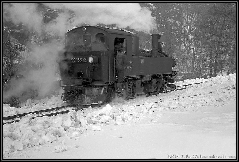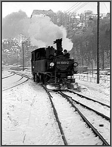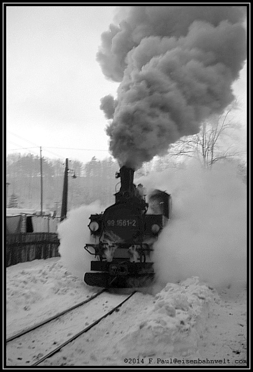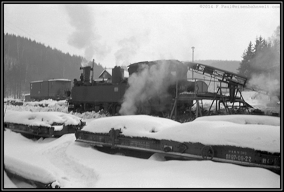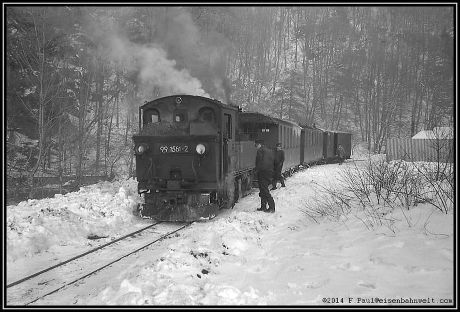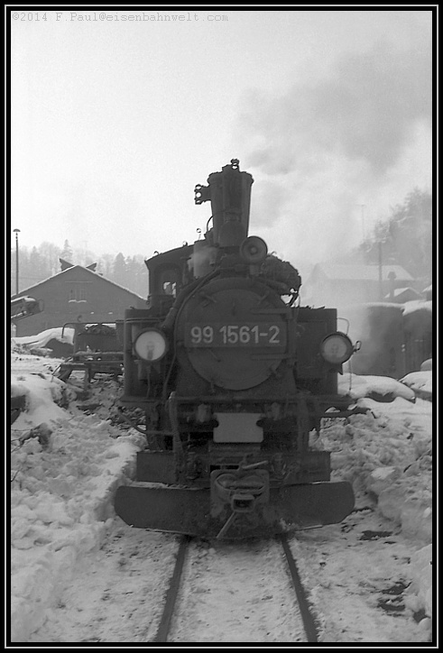 Da steht die kleine 99 1561, soeben aus Niederschmiedeberg eingetroffen, an der Zugstange eine Anzahl sie