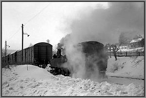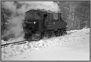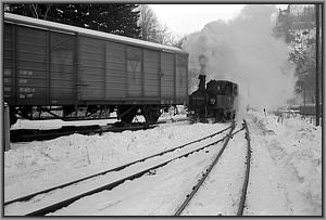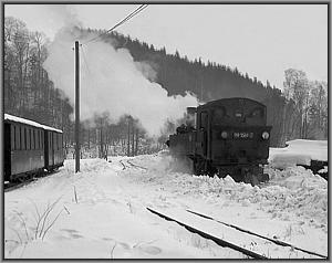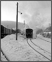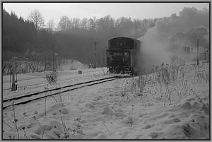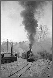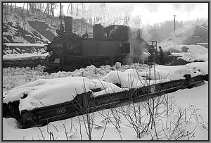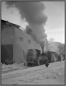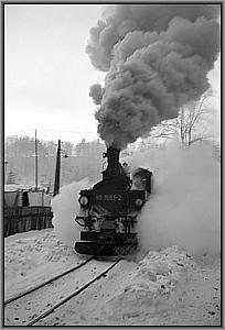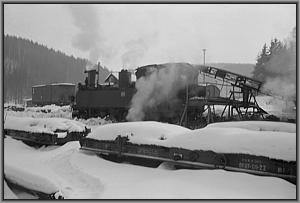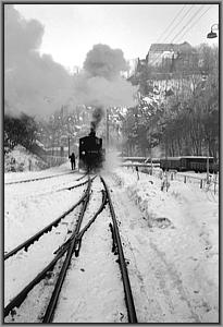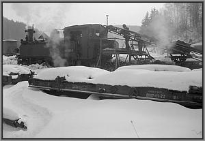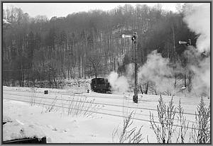 Langsam knarzt die Lok über das von einem Schneepflug freigeräumte Gleis zur Bekohlungsanlage.