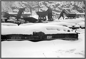 Das Nachbargleis ist dagegen noch unter einer Schneewehe begraben. |