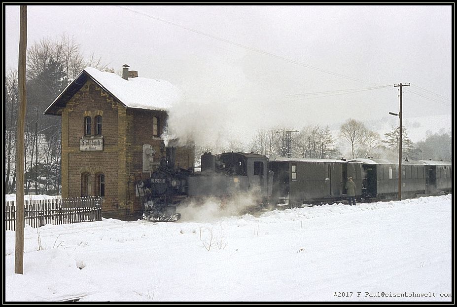 Etwa eine Stunde später hat 99 1606 mit Ng 69953 die Wasserstation von Steinbach erreicht. Die altertümliche anmutende Technik