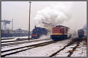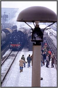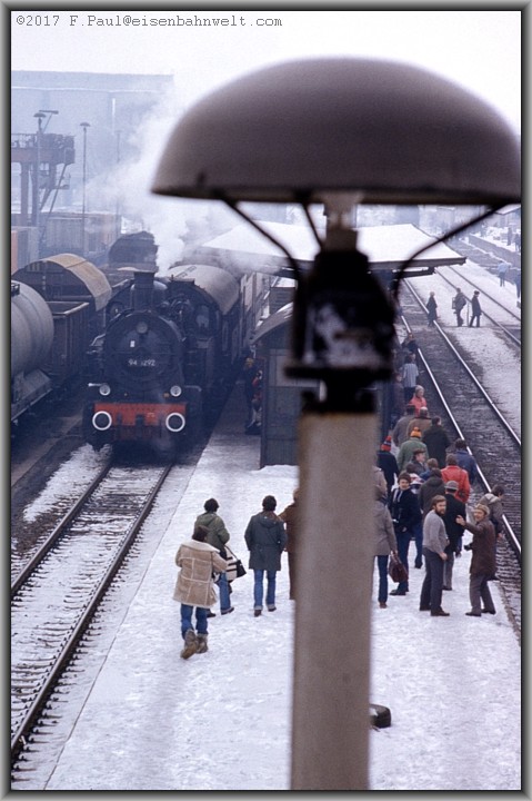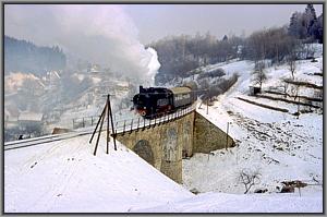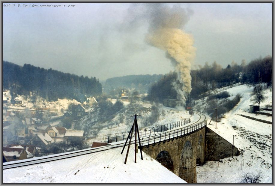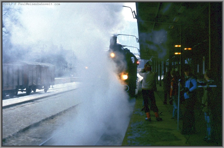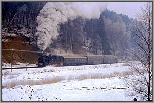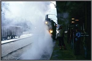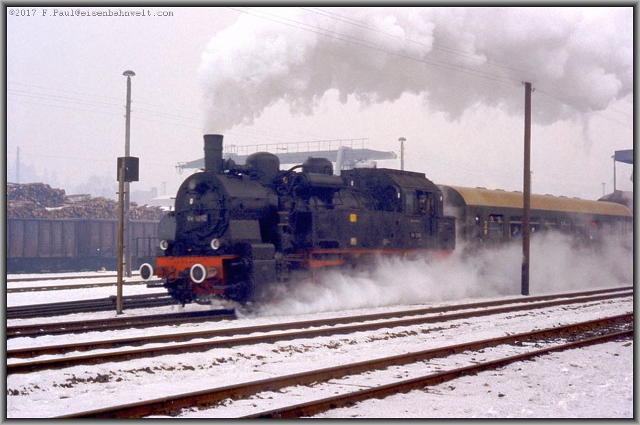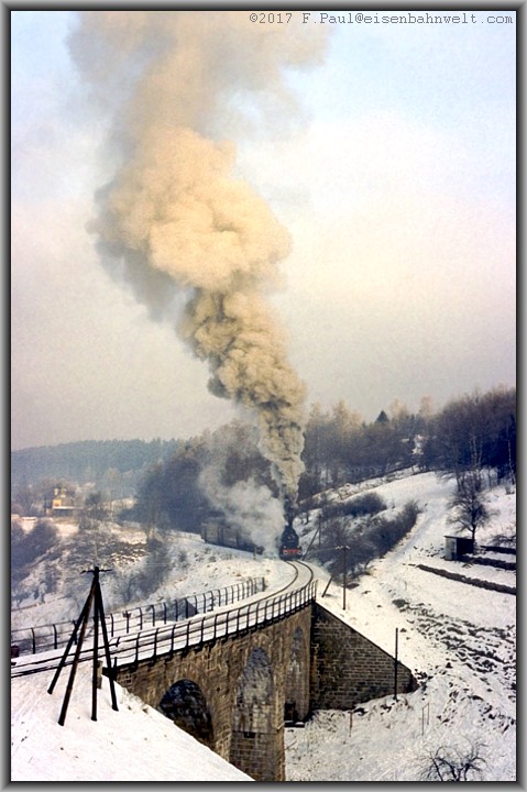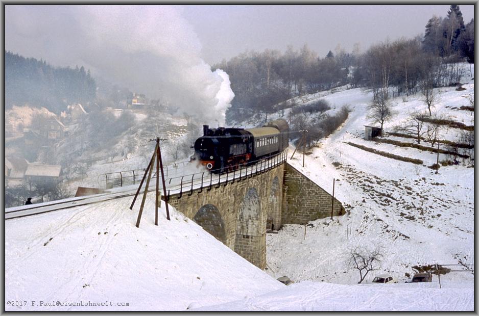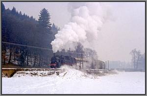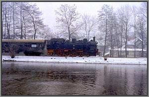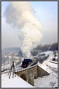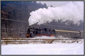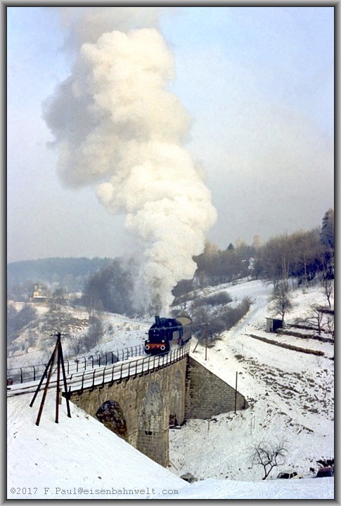 der BR 94 hier mit solchen Garnituren, bestehend aus einer zweiteiligen Doppelstockeinheit und einem Bghw-Wagen, entlang, an kalten Tagen eine Fahne von Dampf