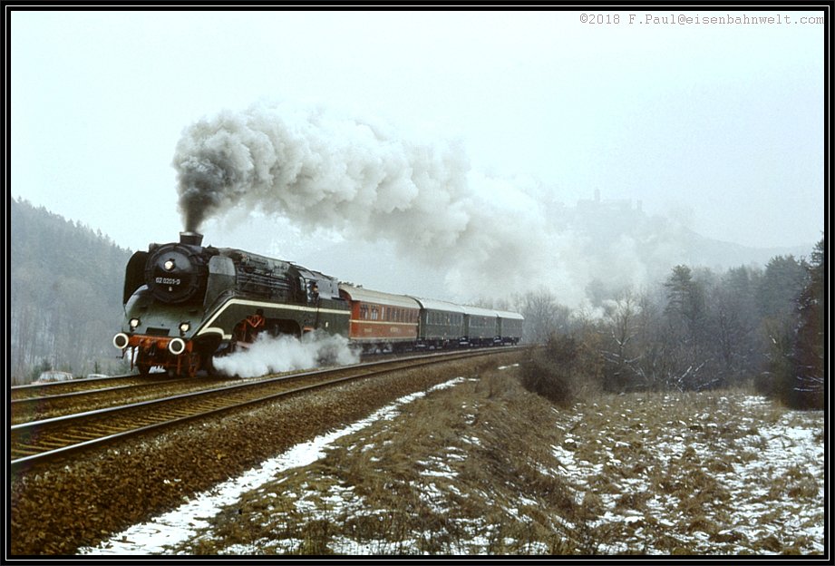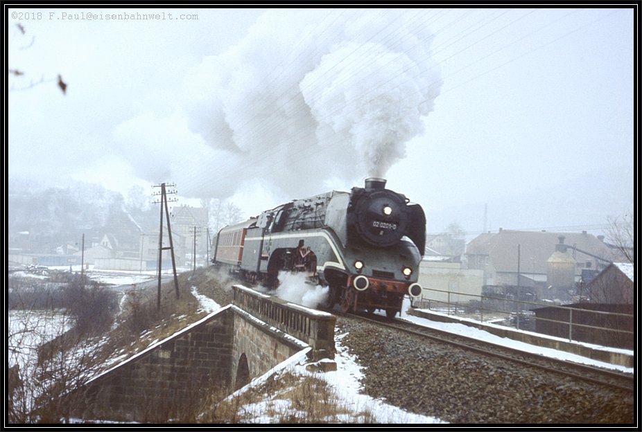 02 0201 am 24.02.1984 mit dem Intraflug-Sonderzug zwischen Eisenach und Wasungen